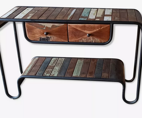 Console tubulaire avec deux tiroirs.